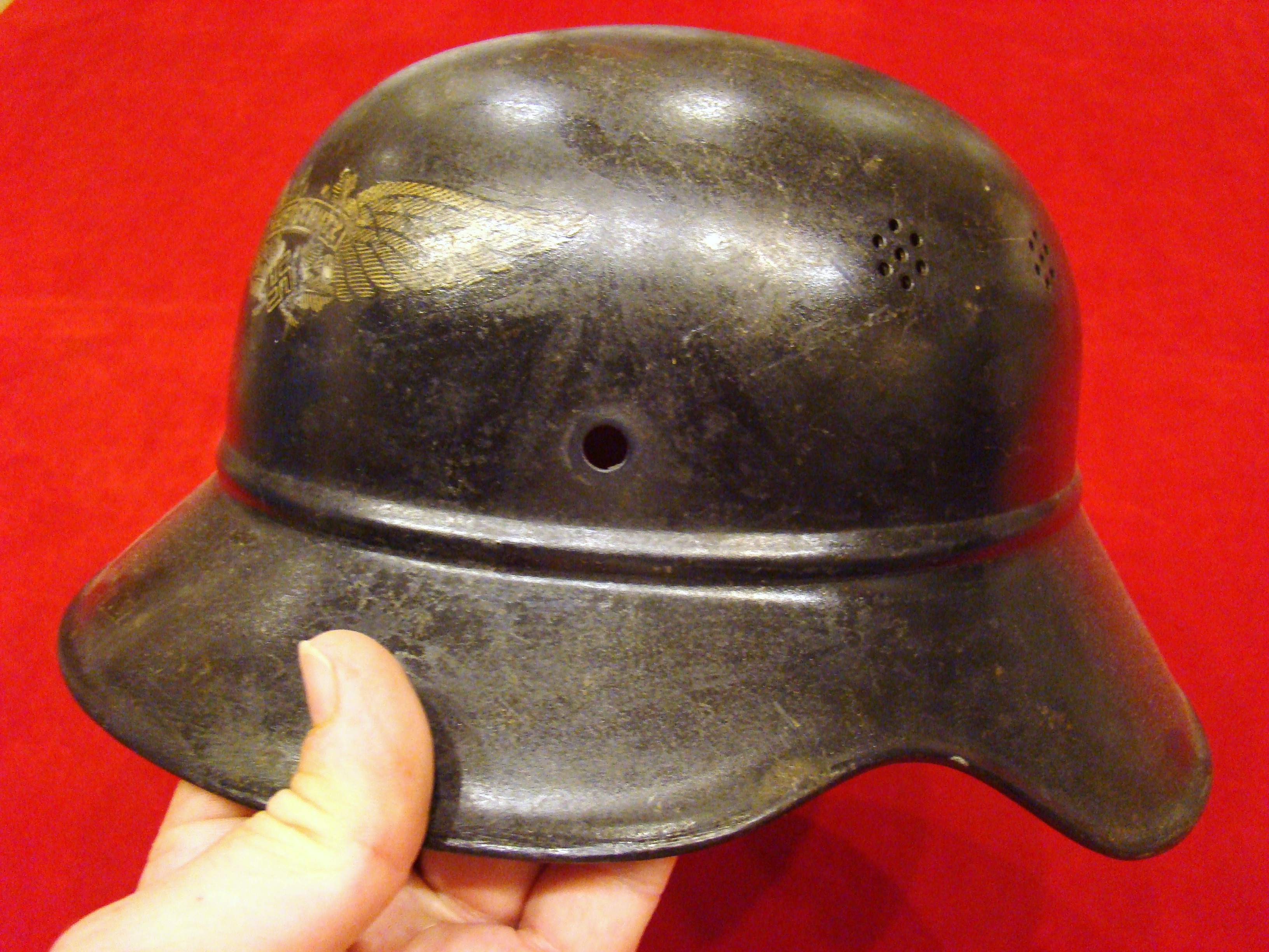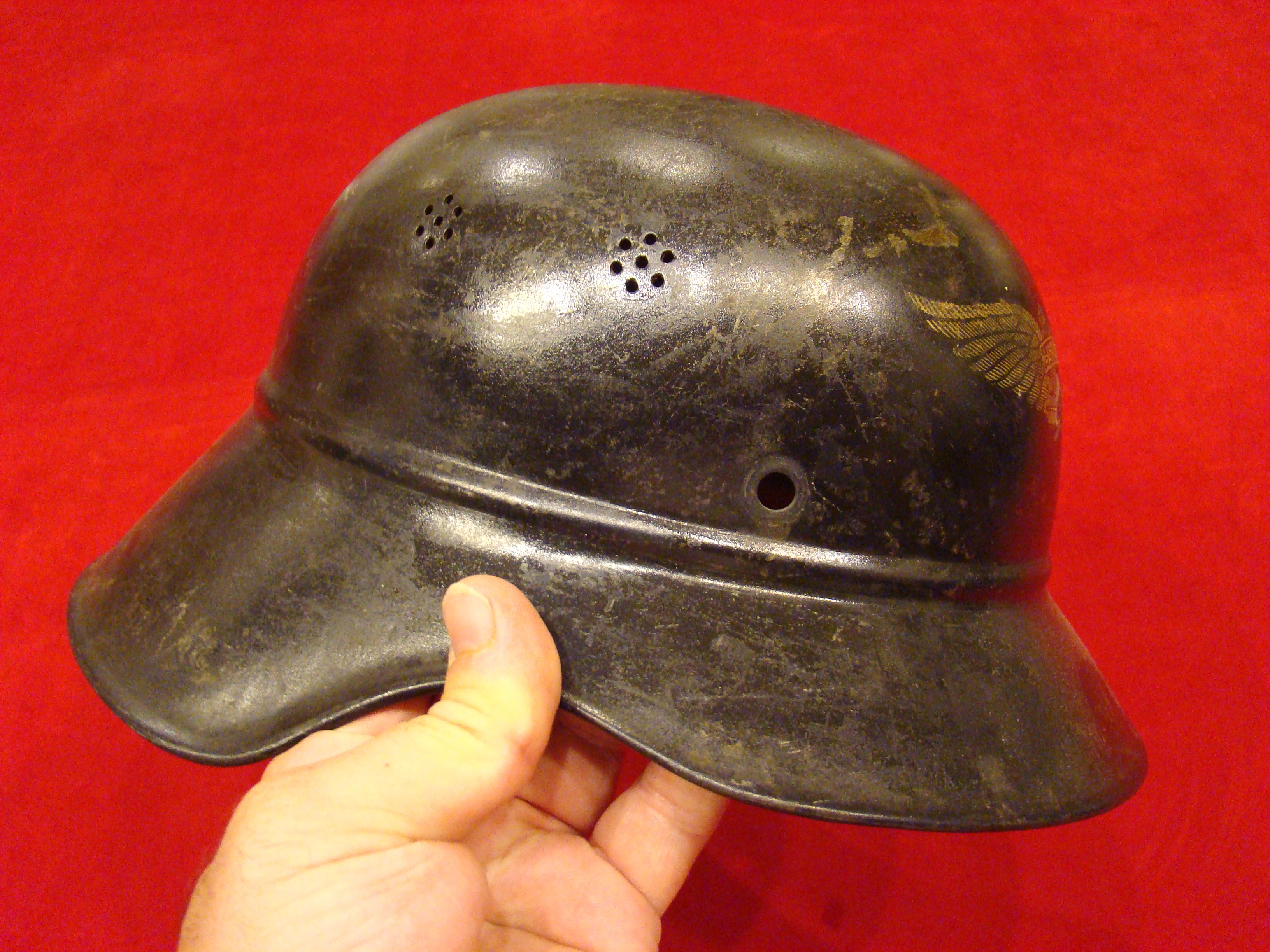 This organization was called the “Reich Air Protection League”. Basically, first responders to allied bombing raids. Good overall condition but missing liner and chin strap.