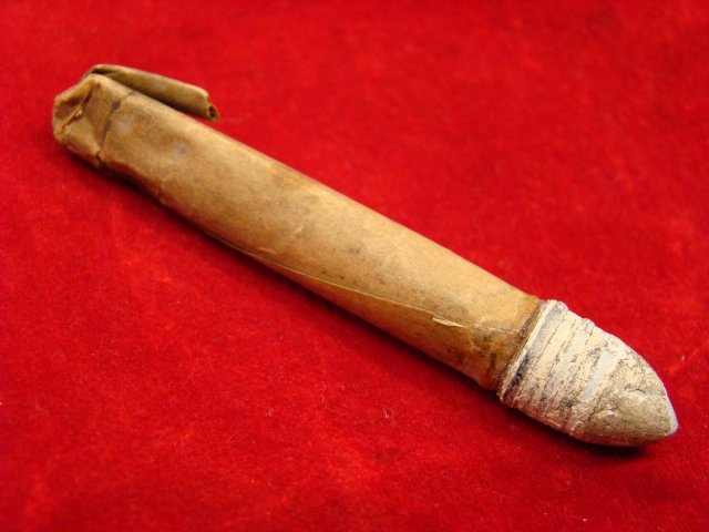 Exceptional quality cartridge from the collection of Jack Bell. Display this with your M-1841 Converted Rifle, M-1855-1863 Springfield, US Contract or Enfield Rifled Muskets.