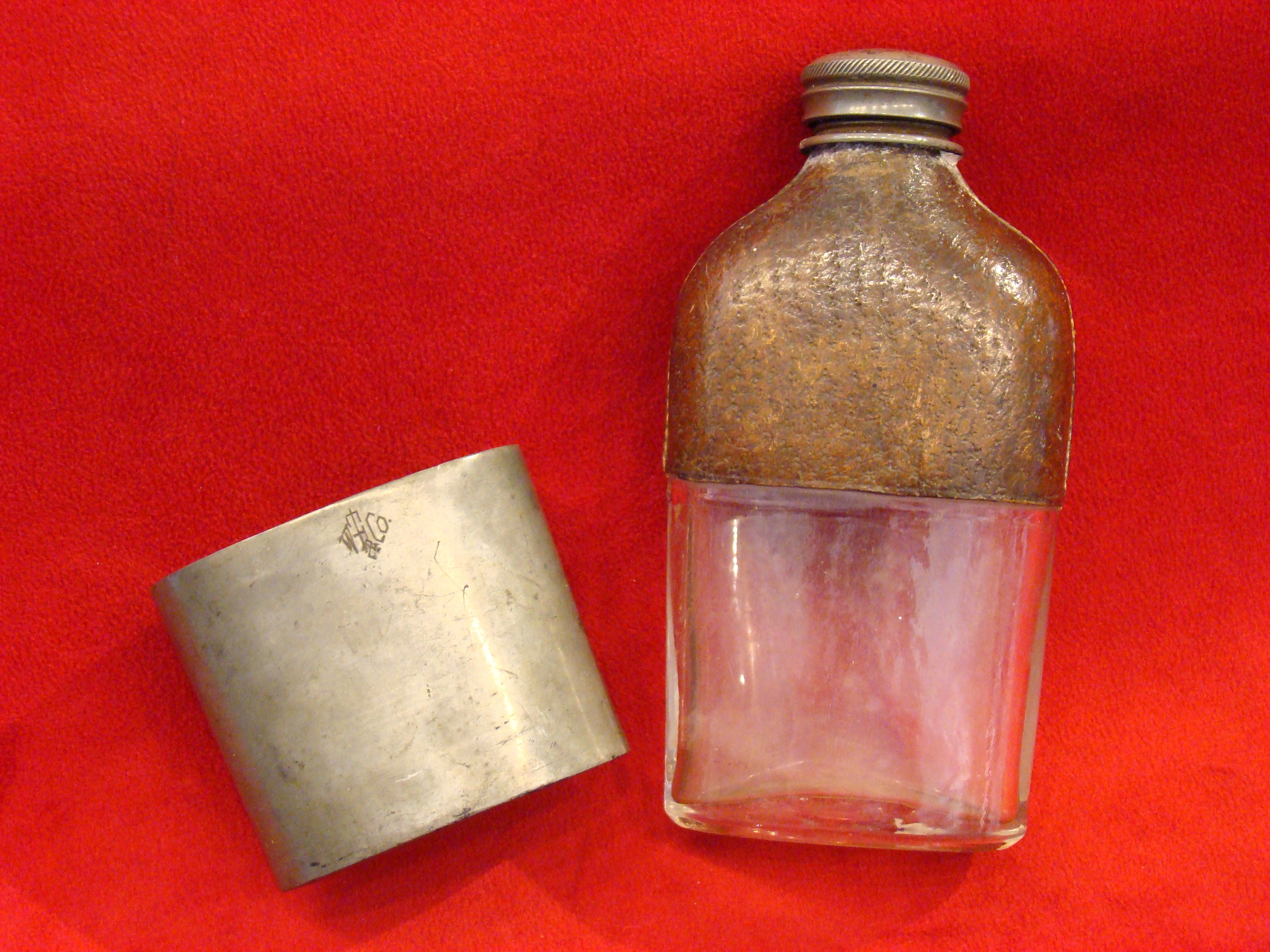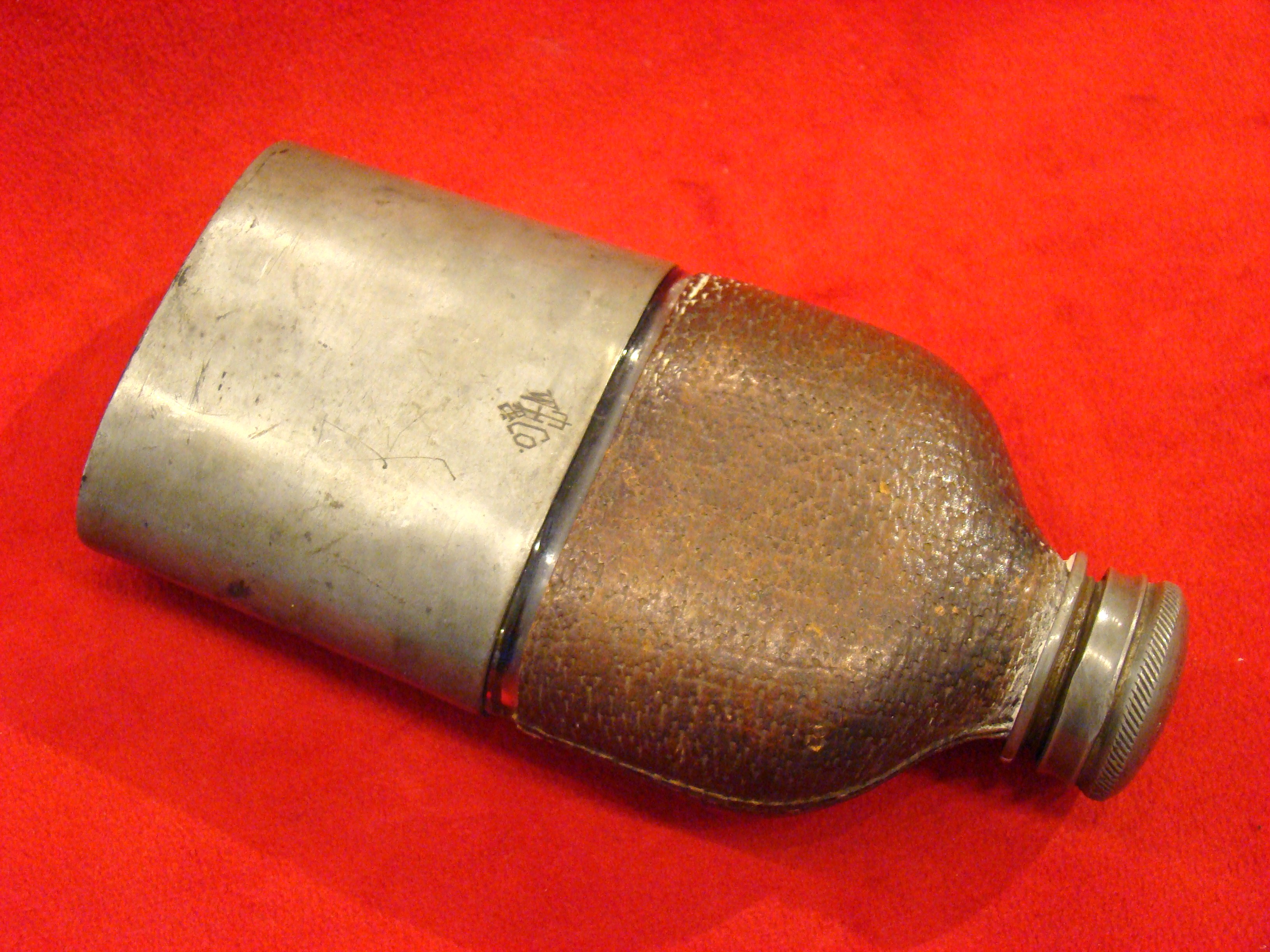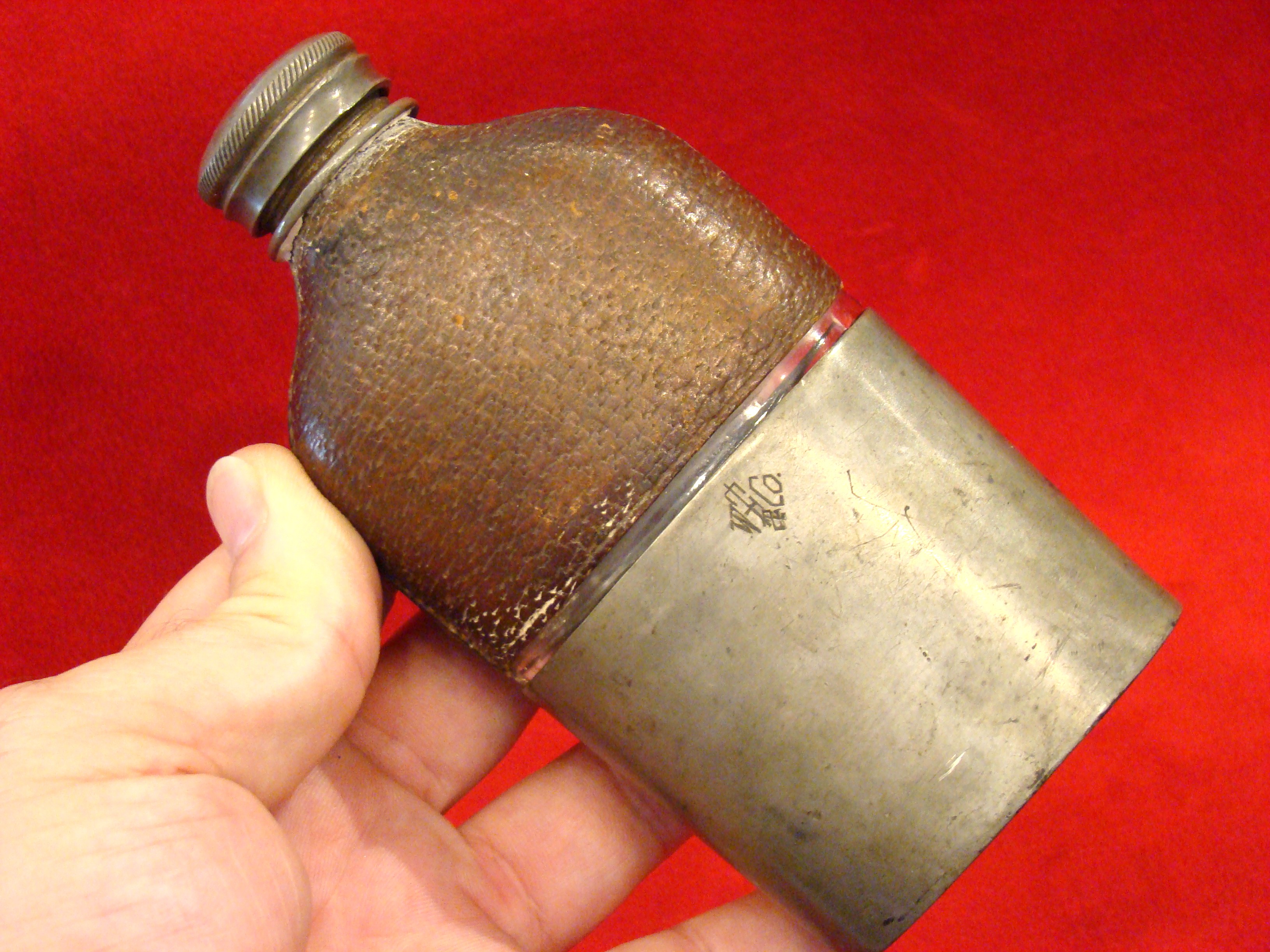 MS 4. Civil War Whisky Flask/Cup Marked “W.T. FRY & Co. NEW YORK” Identified to Sergeant Richard Carter, Co. C 2nd Wisconsin Vol. Inf. Regiment. Later Transferred to 5th Wisconsin Regt. (Army of The Potomac) Where He Achieved Rank of 1st Lieutenent.