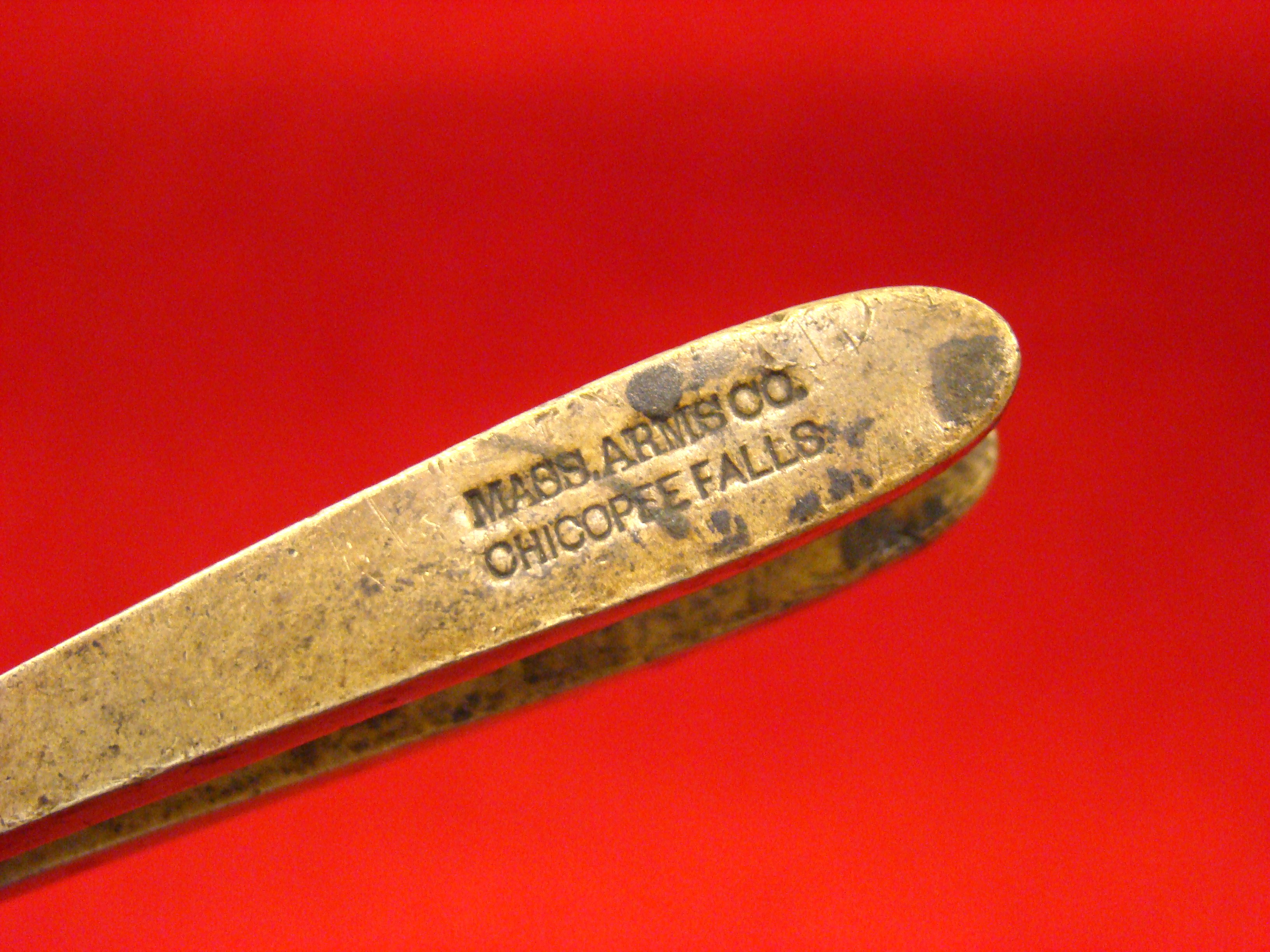 Scarce brass bullet mold in excellent condition. Ready to display with your revolver or cased set. Clearly stamped “MASS ARMS CO. /CHICOPEE FALLS“. Only 1000 of these revolvers were produced and almost all were purchased by the State of Virginia Militia just prior to the war. Here is the correct bullet mold. $395.00