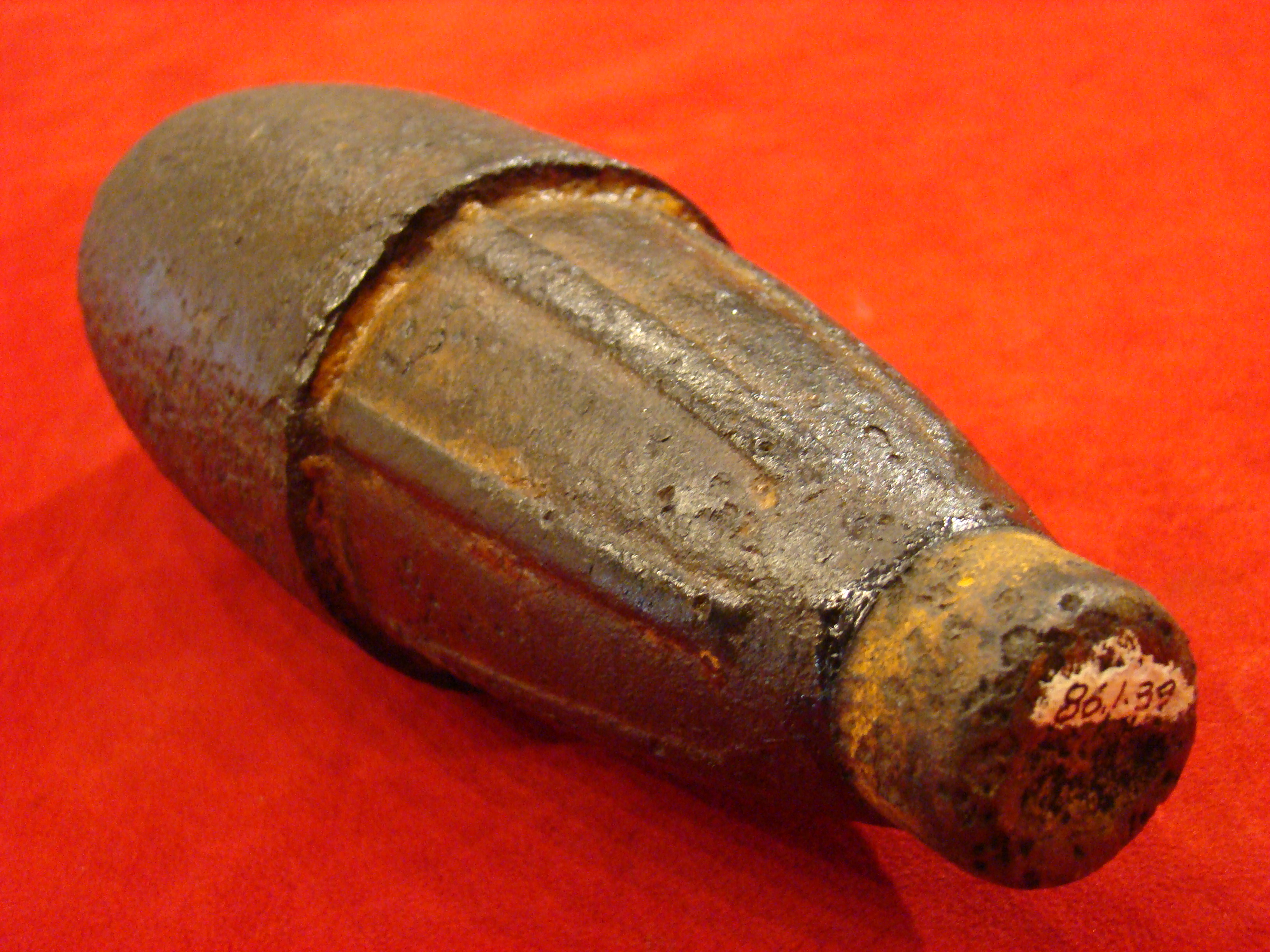ART 1. Dug US 3″ Schenkl Percussion Fused Shell. MOLLUS Museum Collection. The Very Shell Photographed on Page 108 of William C. Davis’ Book “Fighting Men of The Civil War”.