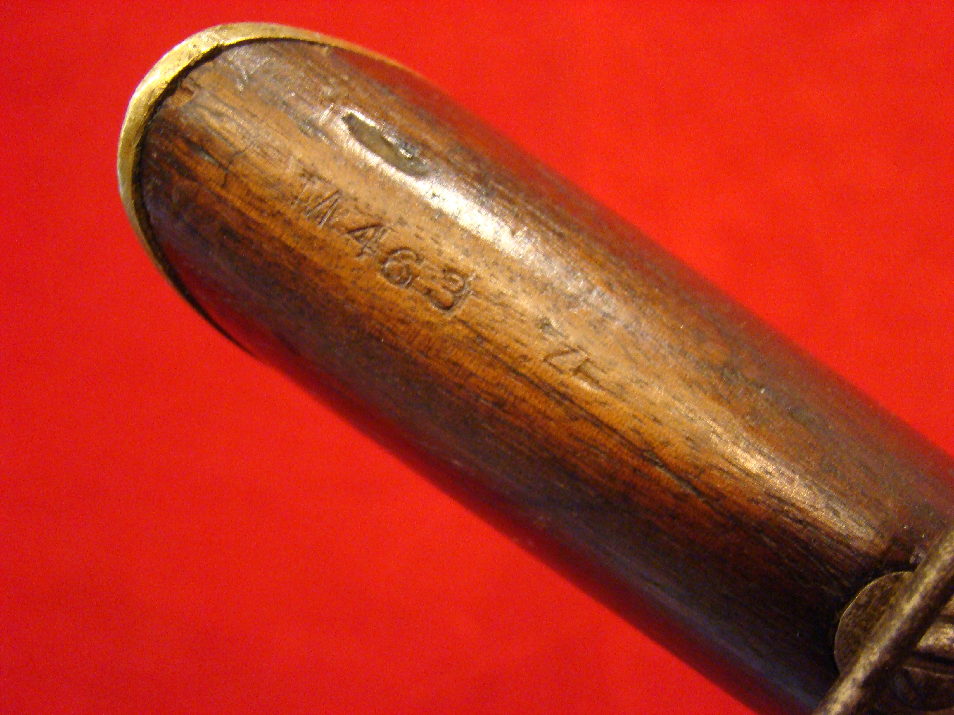 Excellent condition with original scabbard. Blade is smooth with no nicks or modern sharpening. Dated 1910 on ricasso. Scabbard has US Military Inspector stamp “MADEW/H.U.B.”. $450.00