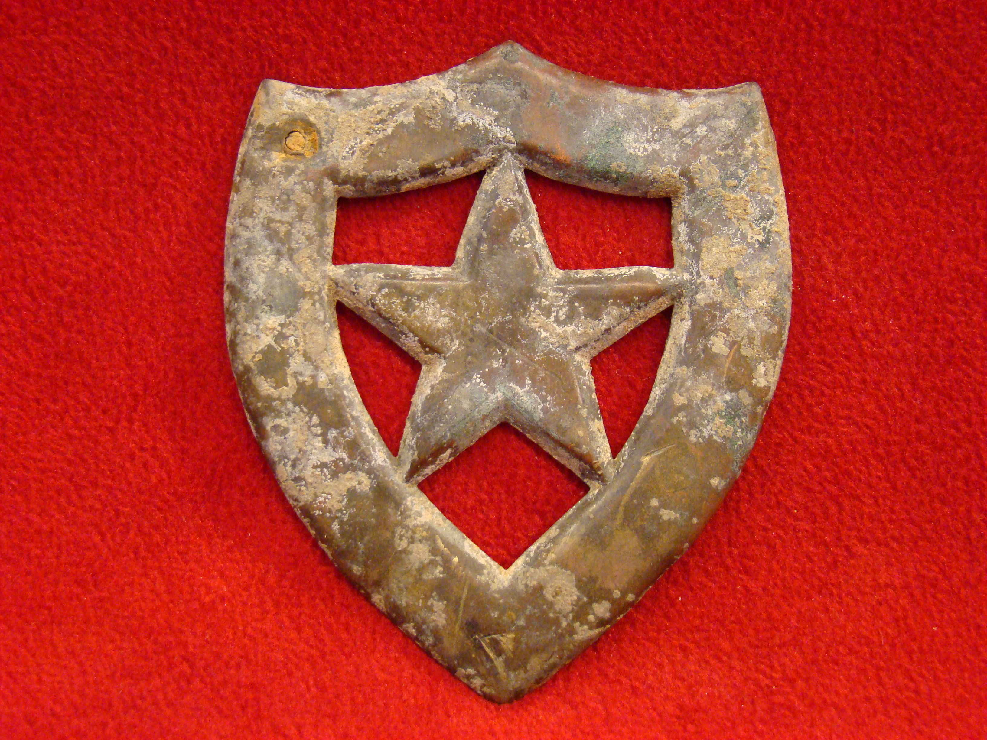 An real beauty with sharp details and an aqua colored patina. Found at Camp Stanley near Murfreesboro TN.  $195.00
