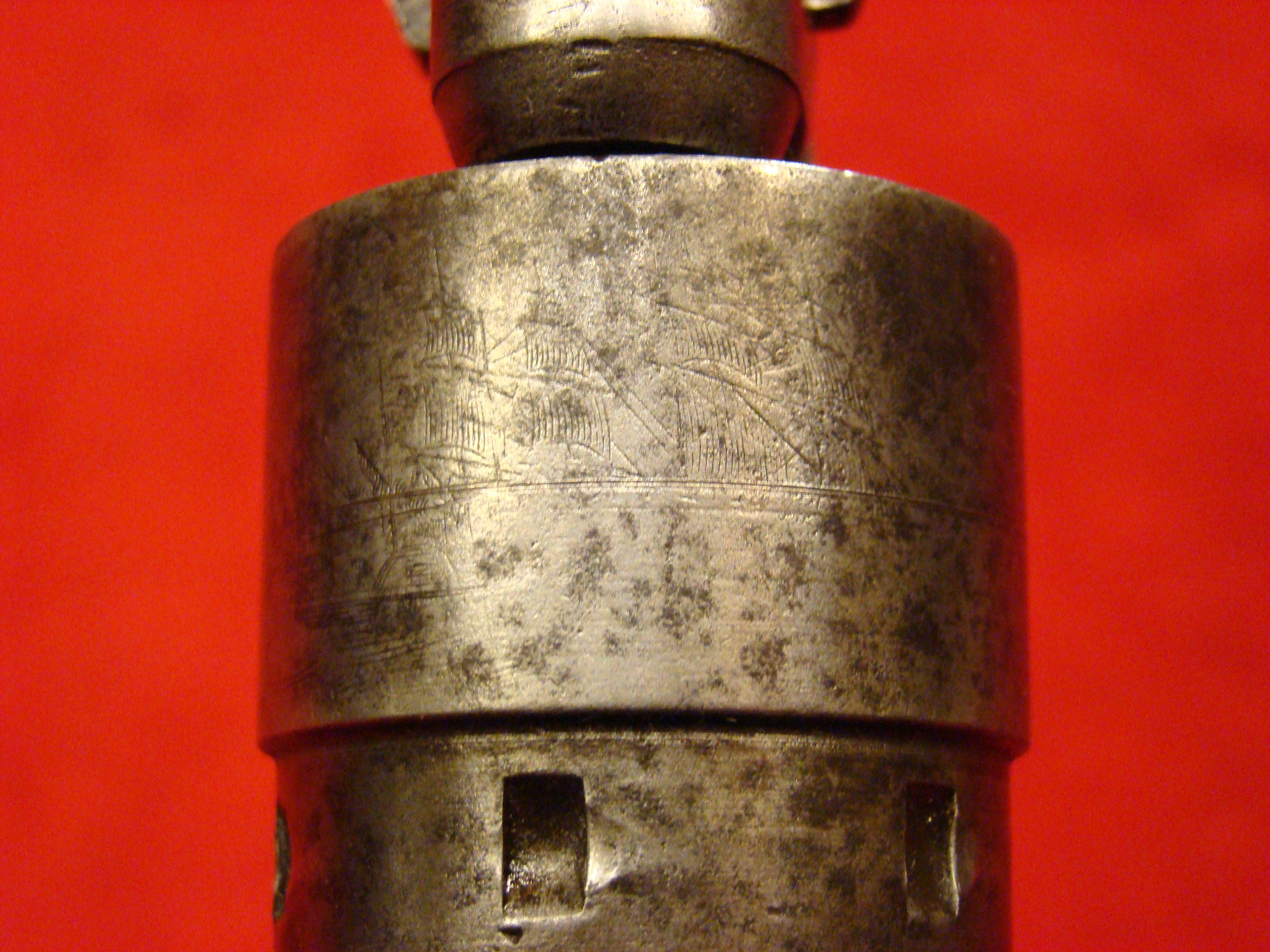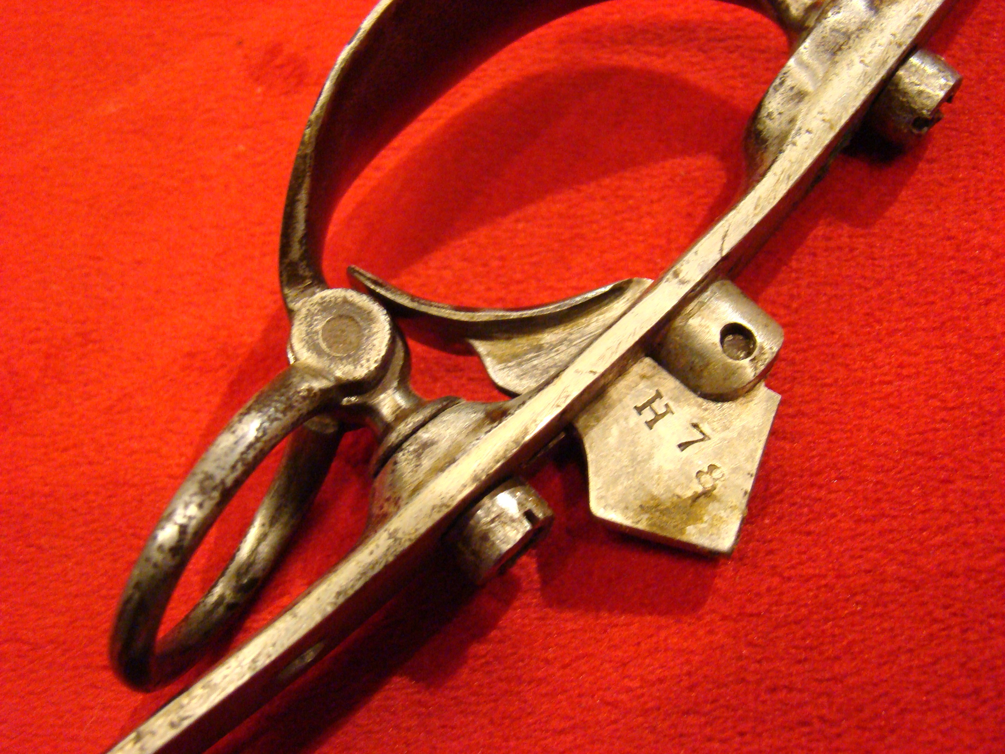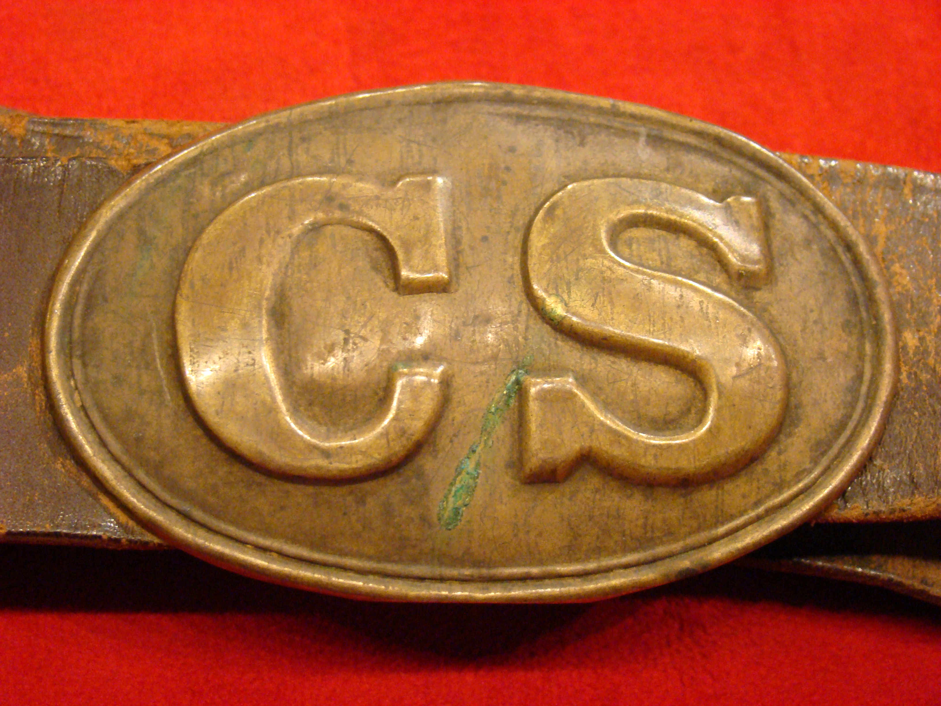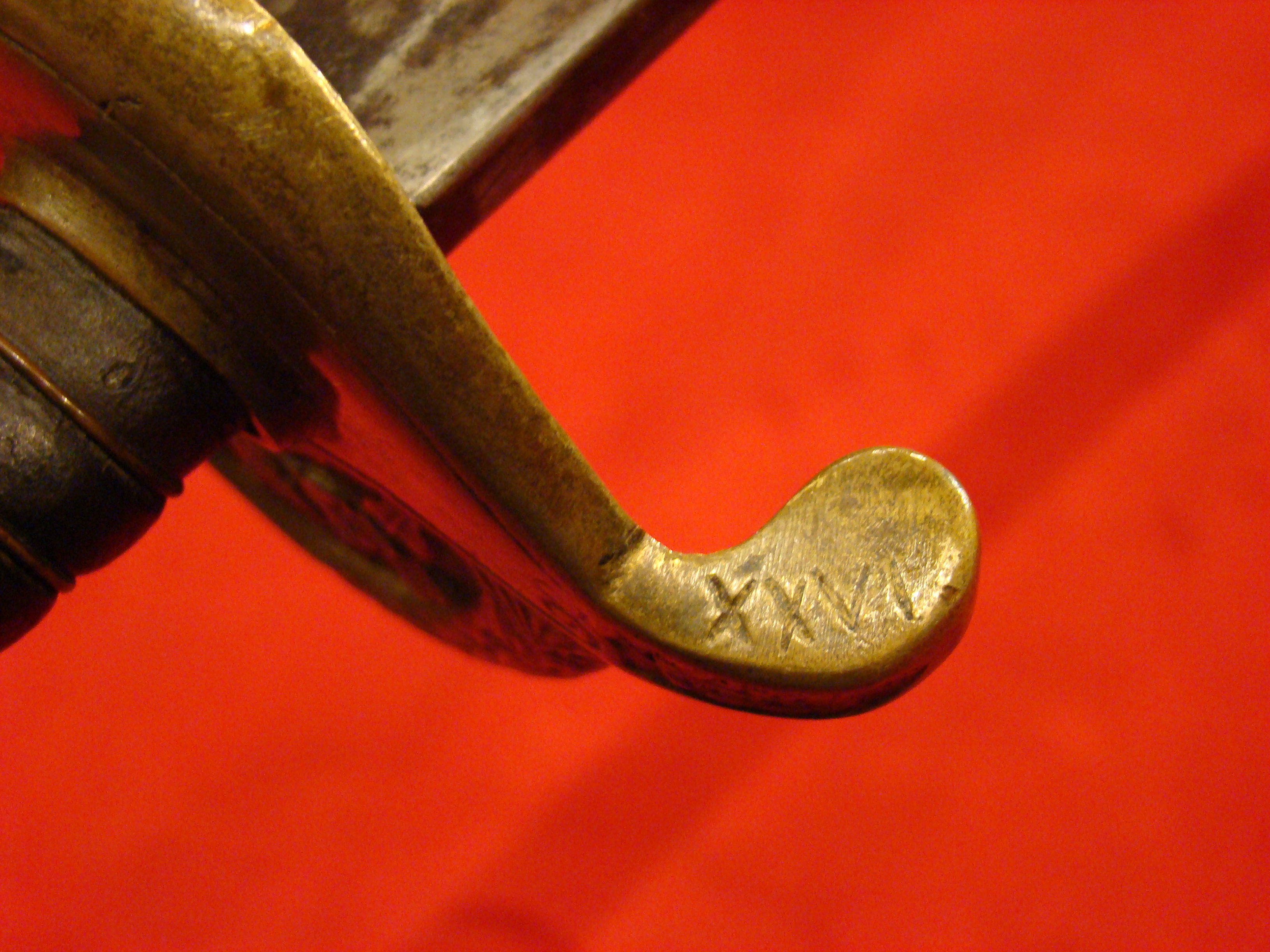 Here is the most attractive and interesting of the CS marked artillery short swords (my opinion). Condition is very good with no wobble in the hollow cast guard. The letters “C” and “S” are prominently cast into the quillons. Blade has no nicks or sharpening. Light surface oxidation gives it a splotchy patina with areas of bright finish coming through. No scabbard, but nonetheless, a fine looking and affordable CS marked sword. Ex. Paul Brill collection.