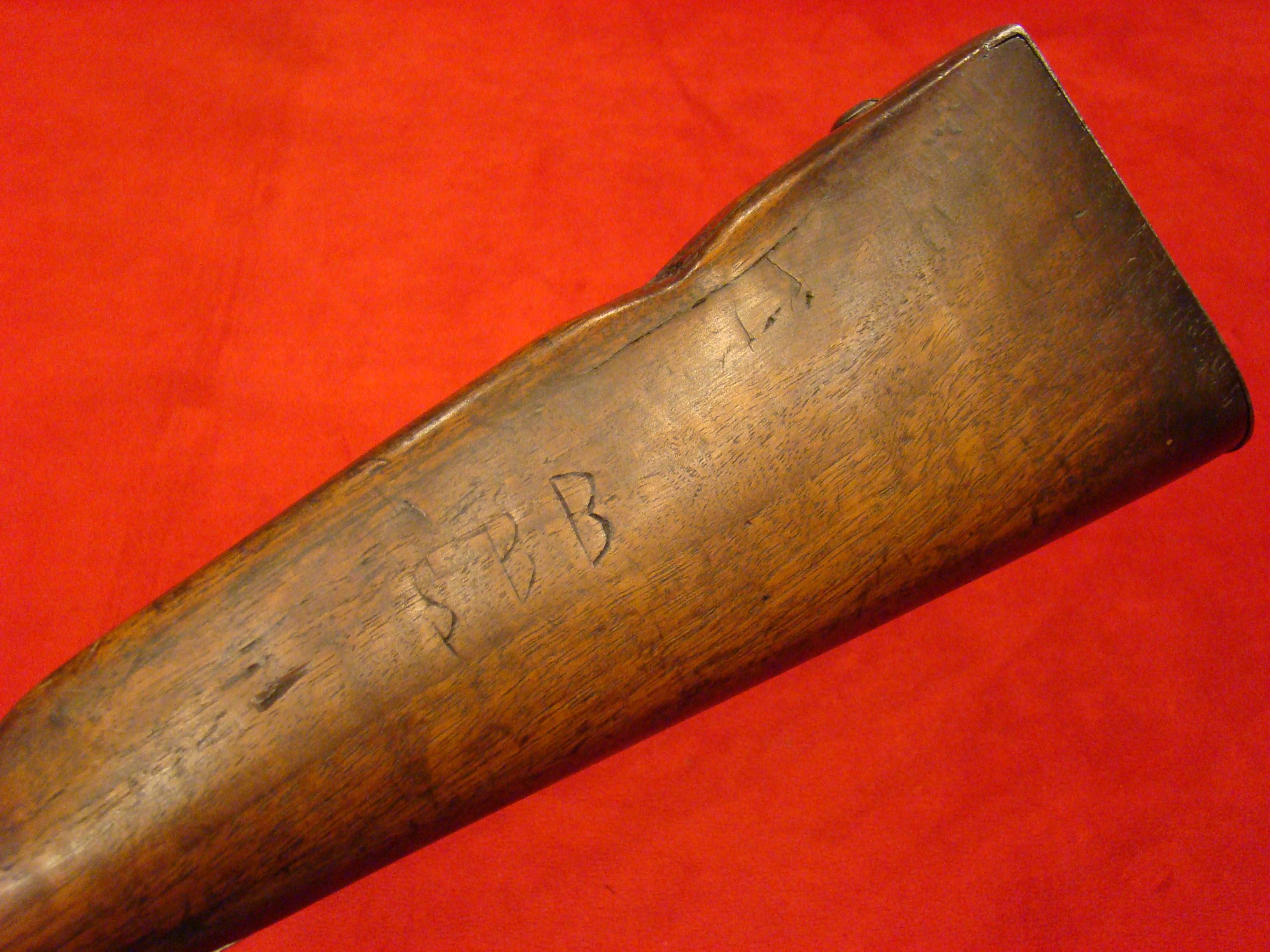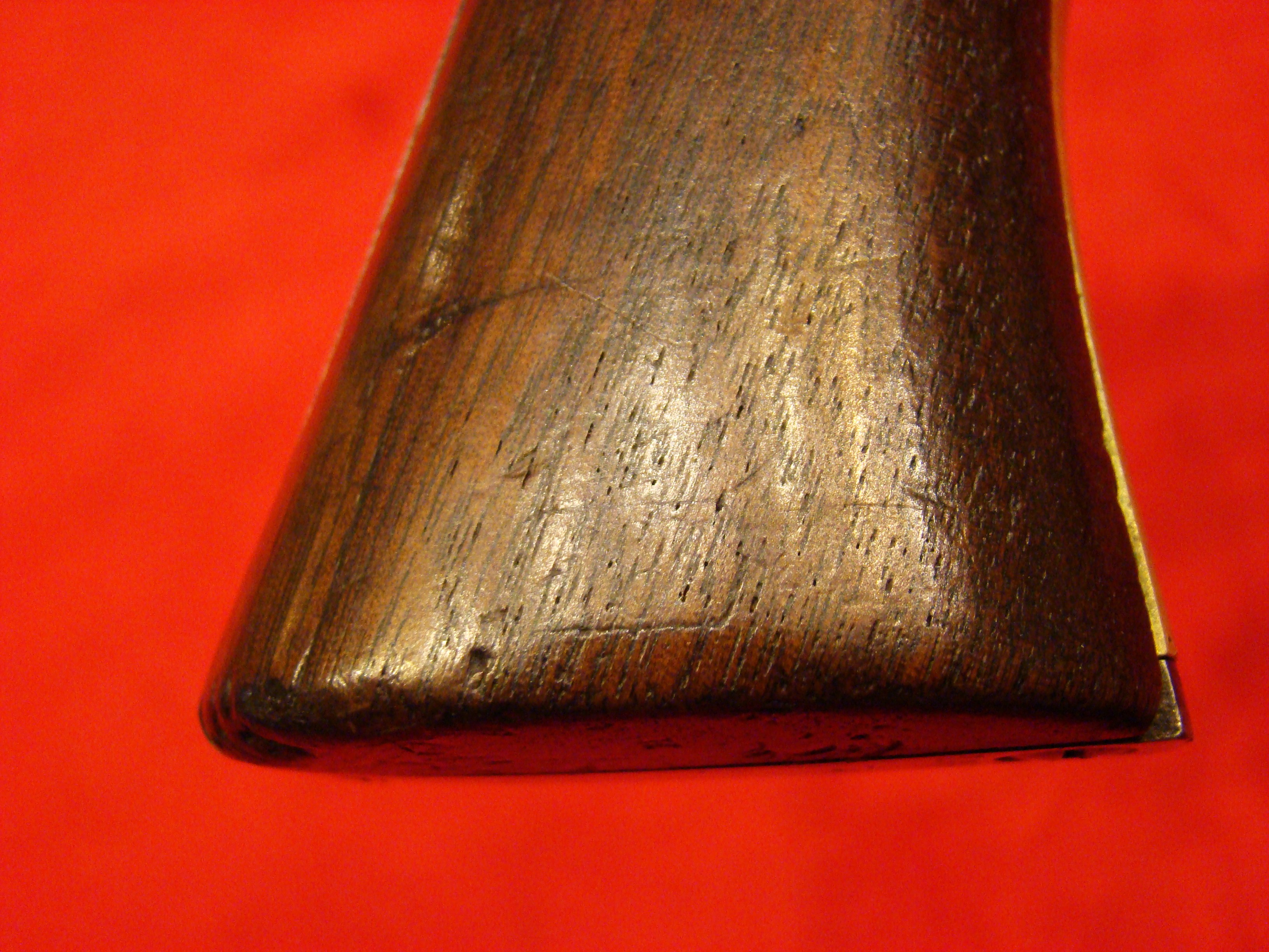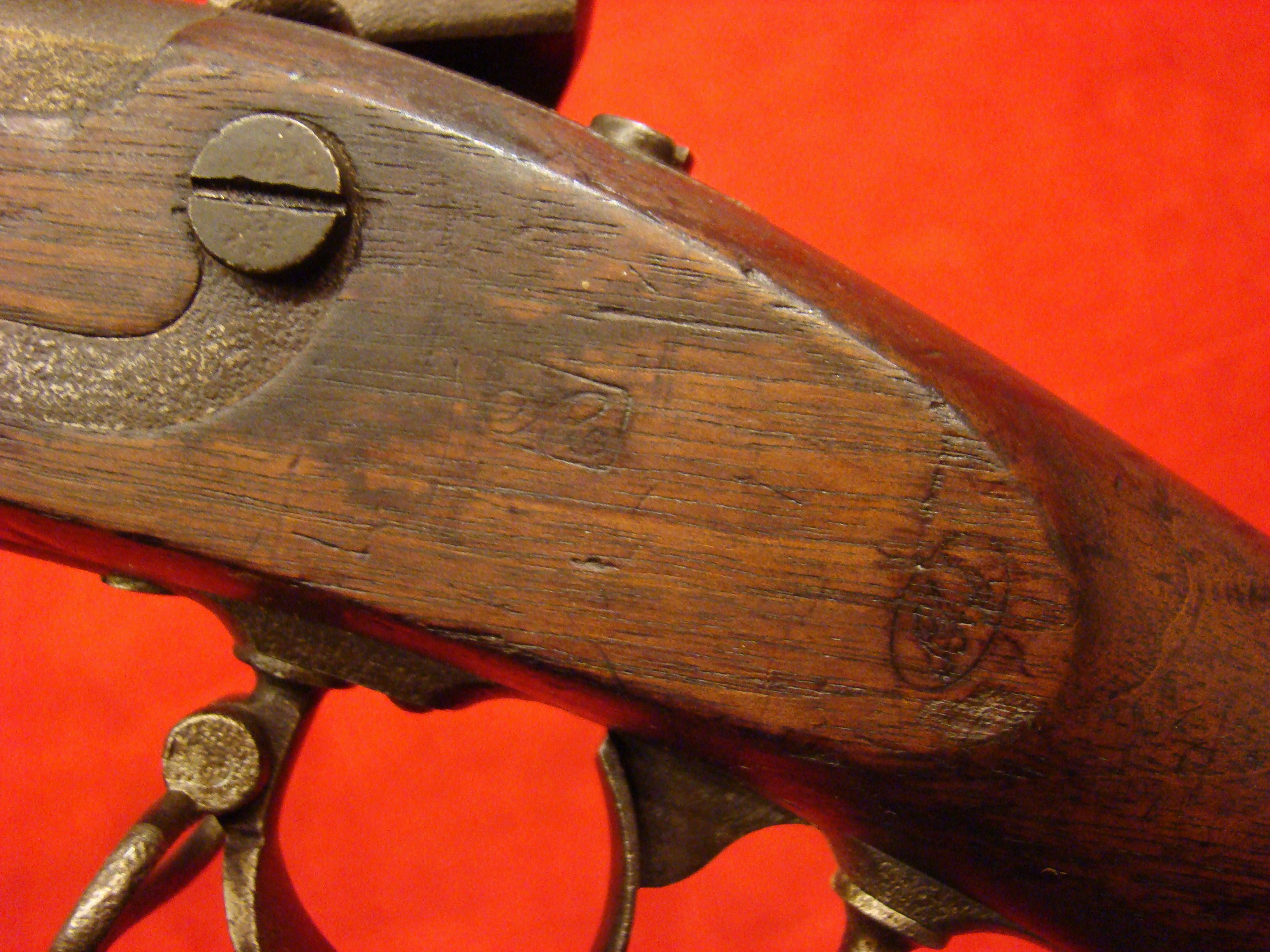 A most remarkable and interesting musket with solid ID and history. One side of the butt-stock is inscribed “R.L. Lockett 18″/R.R.L. 18th Miss. Regt.“. The musket came directly from the Grandson of Noah Rohrbach, whose family name is also attached the the Rohrbach (Burnside’s) Bridge. A notarized letter signed by W. Roulett (same family that owned the Roulett Farm) accompanies the musket. Letter is dated July 20, 2001 and states that the musket had been in his family since Sept. 17, 1862. A detailed record of Pvt. Lockett’s life and service is also provided. The 18th Mississippi suffered heavy casualties at Antietam, 43% of those engaged. Lockett evidently came through unscathed. He was born in Tennessee but his family re-located to Madison County MS. He enlisted on March 10, 1862 into Co. C, of the 18th Mississippi Vol. Infantry, later part of Gen. William Barksdale’s Mississippi Brigade. Lockett was captured at the second Battle of Fredericksburg on May 3, 1863 but was exchanged soon after on May 23rd. He served with the 18th through many battles including Gettysburg, eventually getting wounded at Cedar Creek on Oct. 19, 1864 “having his front teeth shot out”. Lockett was captured again at Sayler’s Creek on April 6, 1865. He was released upon giving an oath of allegiance and provided transportation to Canton MS. Lockett lived his life as a farmer, was married, had children, and died at the age of 86 on November 26, 1924. The condition of Lockett’s musket is untouched. The lock is marked “SPRINGFIELD” and dated “1846“. The barrel has a light layer of surface rust. There is heavier oxidation on the trigger guard, barrel bands, and butt plate. Butt plate is marked “US”. The lock functions properly. The original ramrod is full length with threaded tip but does not fit all the way down the channel due to an obstruction. The stock has a lot of character with hand-carved checkering at the wrist. Pvt. Lockett deliberately and clearly inscribed his name (twice). You can make out “Miss.” with difficulty but it is definitely there. On the opposite side of the butt-stock is another soldier’s name “D.D. Baty“. This soldier, according to some research, was Pvt. David D. Baty, Co. H, 6th GA. (later mustered into Co. B, 53rd. GA. Vol. Infantry Regt.). The 18th Mississippi and 53rd Georgia were both in Gen. Lafayette McLaws Division. How Pvt. Lockett acquired Baty’s musket prior to Antietam is unknown. The M-1842 Percussion Musket .69 Cal. is typical of Confederate arms used at Antietam. The 18th Mississippi was engaged at the West Woods sector of the battlefield and the circumstances in which he encountered Noah Rohrbach is unknown. Perhaps he was slightly wounded, or perhaps provided with some food and water? This musket comes from the collection of the late Dennis Urban, he was a chairman on the Knoxville American Civil War Roundtable, and was a noted researcher. A comprehensive folder of his research paperwork is included.