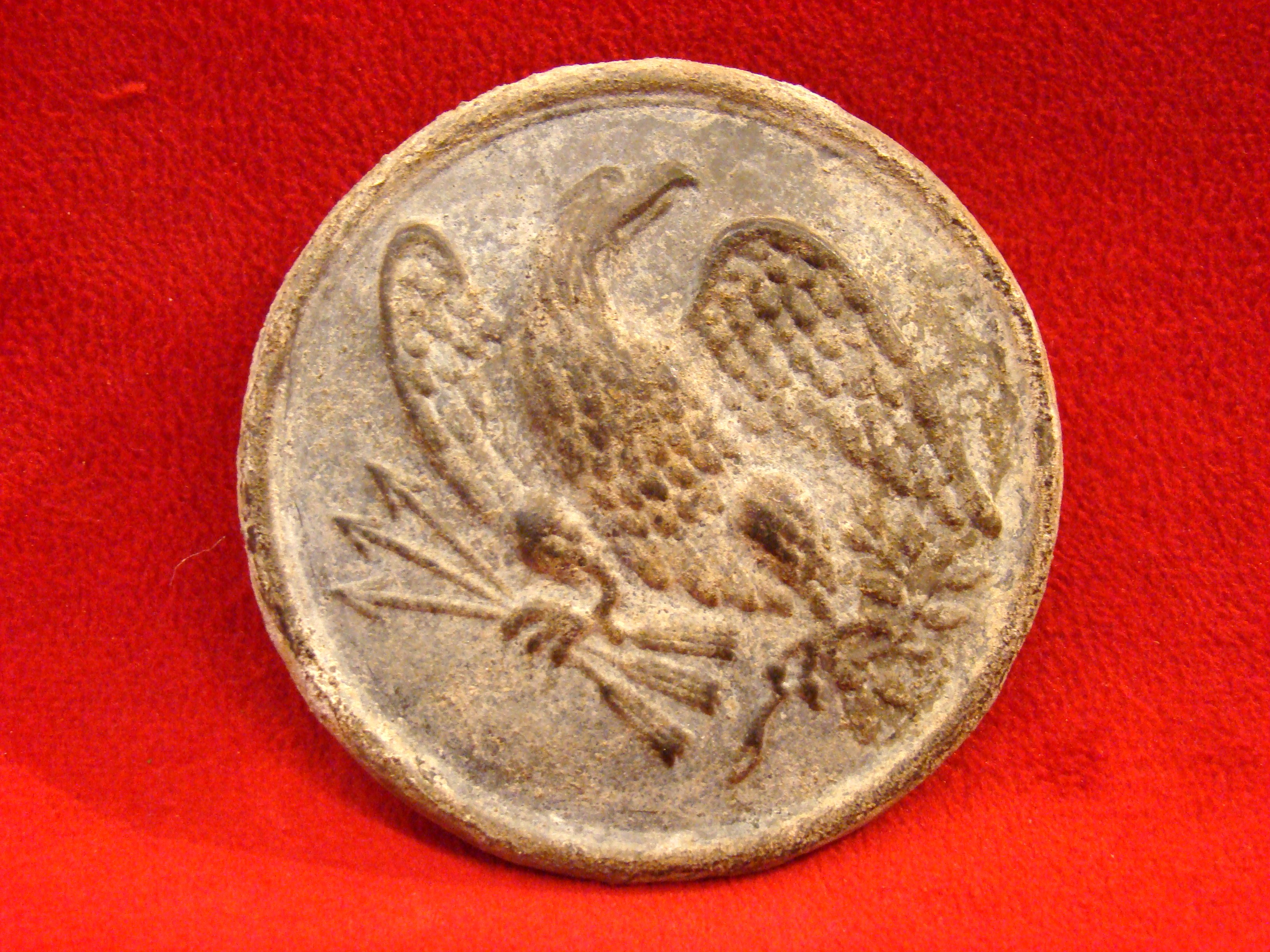 Near pristine example with sharply deatailed “Great Seal of Ohio” on a lined field. Reverse has full lead, and both attachement loops intact. Found near the Malvern Hill VA. Battlefield in 1992.