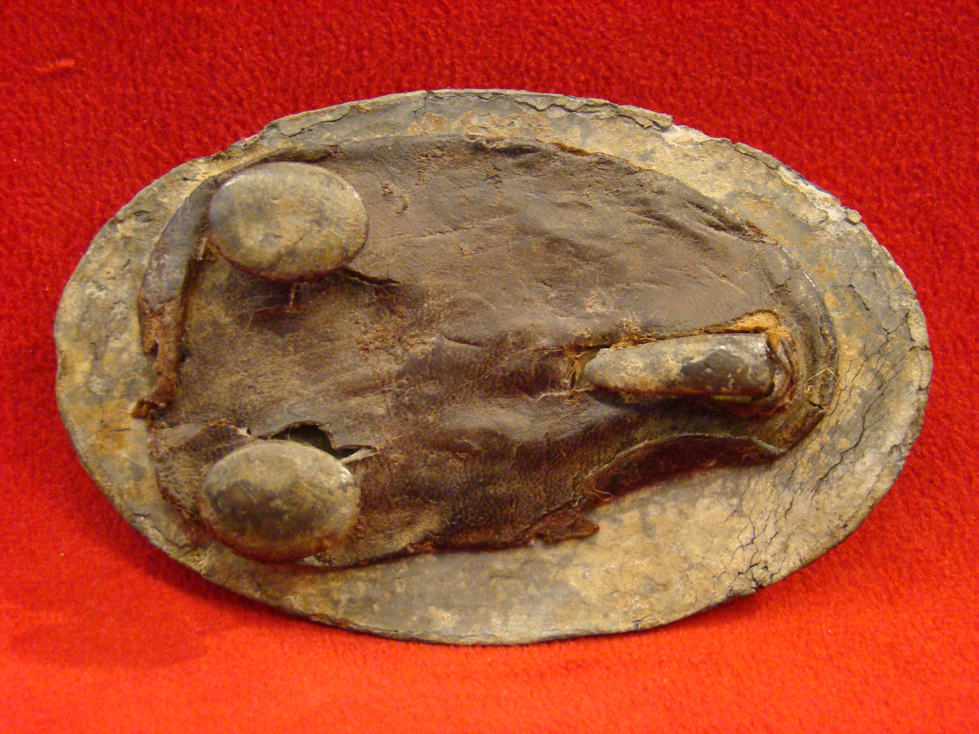 Outstanding buckle. Flawless, with remants of the original leather belt on the reverse. Found on the Malvern Hill VA. Battlefield in 1992 with the above listed Ohio Breastplate.