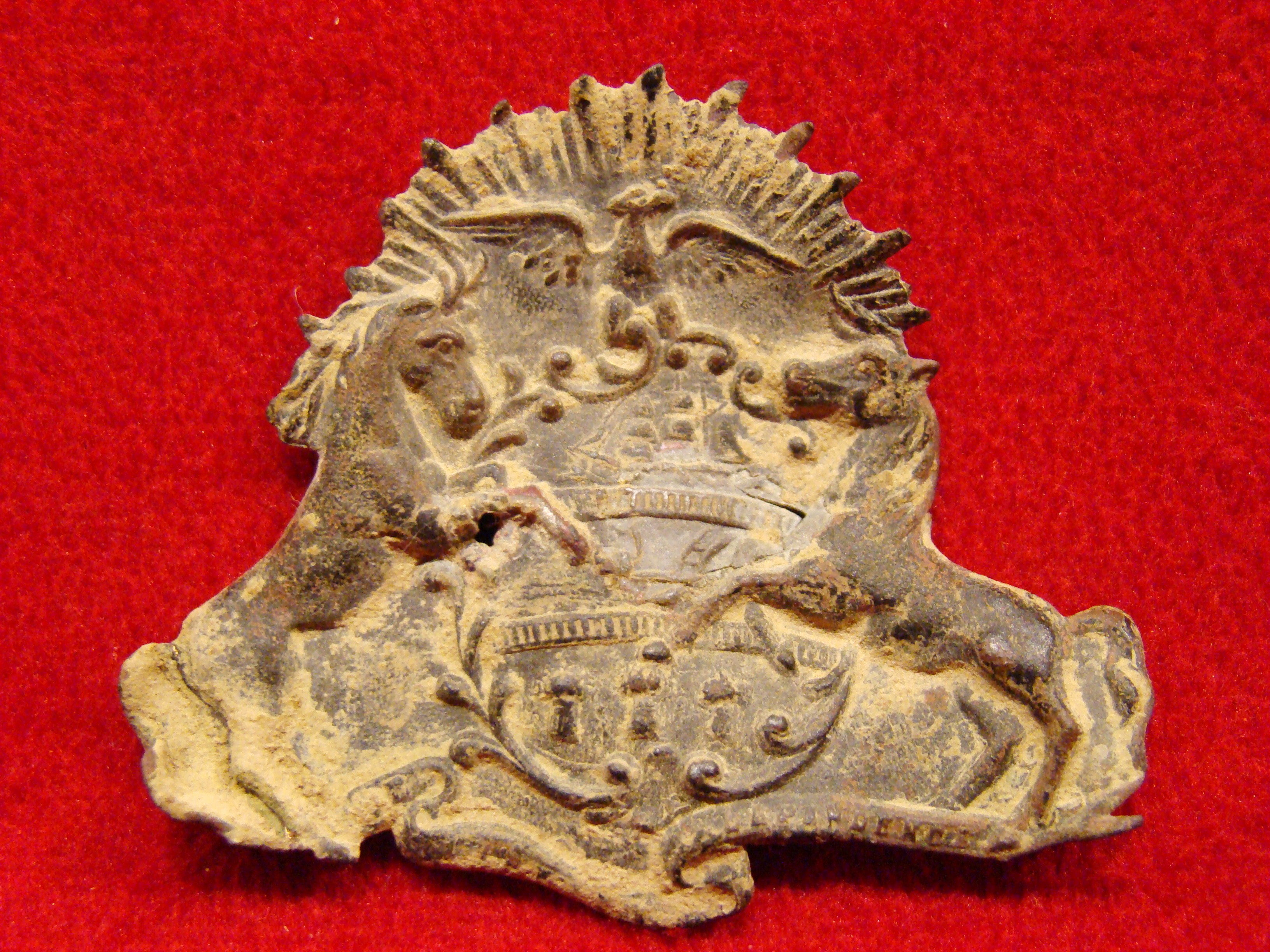 Very rare Mexican War type in great condition. Only minor loss at the upper right edge and no repairs. Possibly cleaned by the digger or a water find. See page 145, Fig. 2. in Howard Crouch’s reference book “Horse Equipment of the Civil War Era” for the type. Provenance unknown.