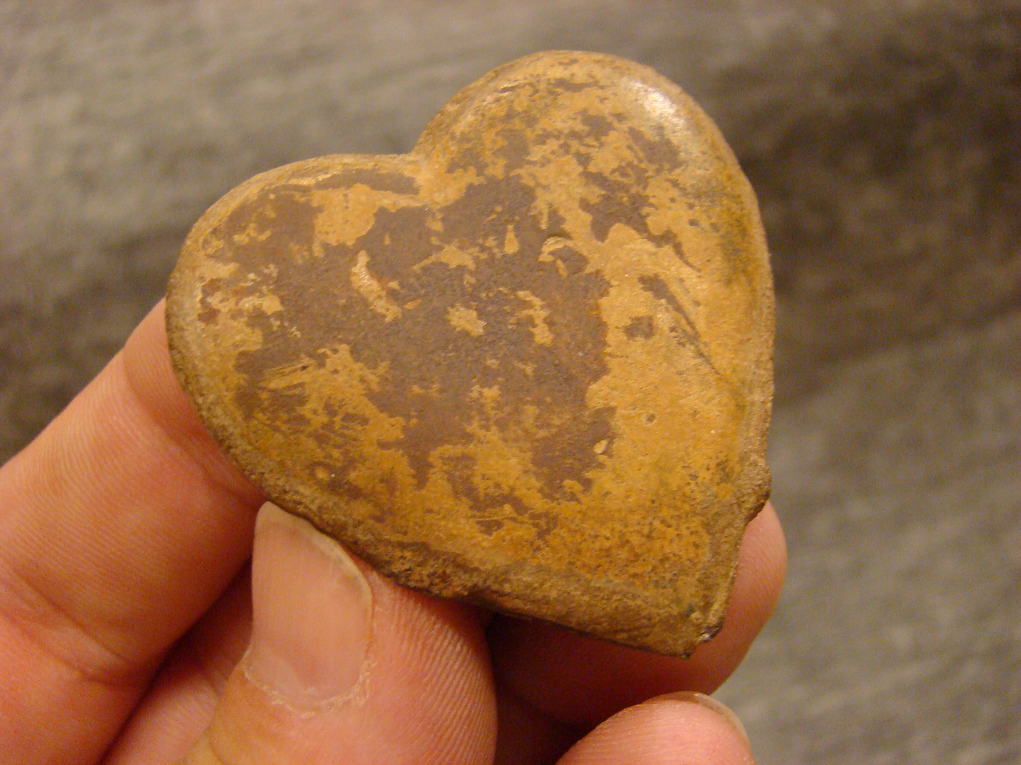 These heart shaped insignia adorned the central chest section of the rider’s harness. Made of stamped copper and found in a Confederate cavalry camp near Chattanooga TN.Excellent condition. Note solder marks on reverse.